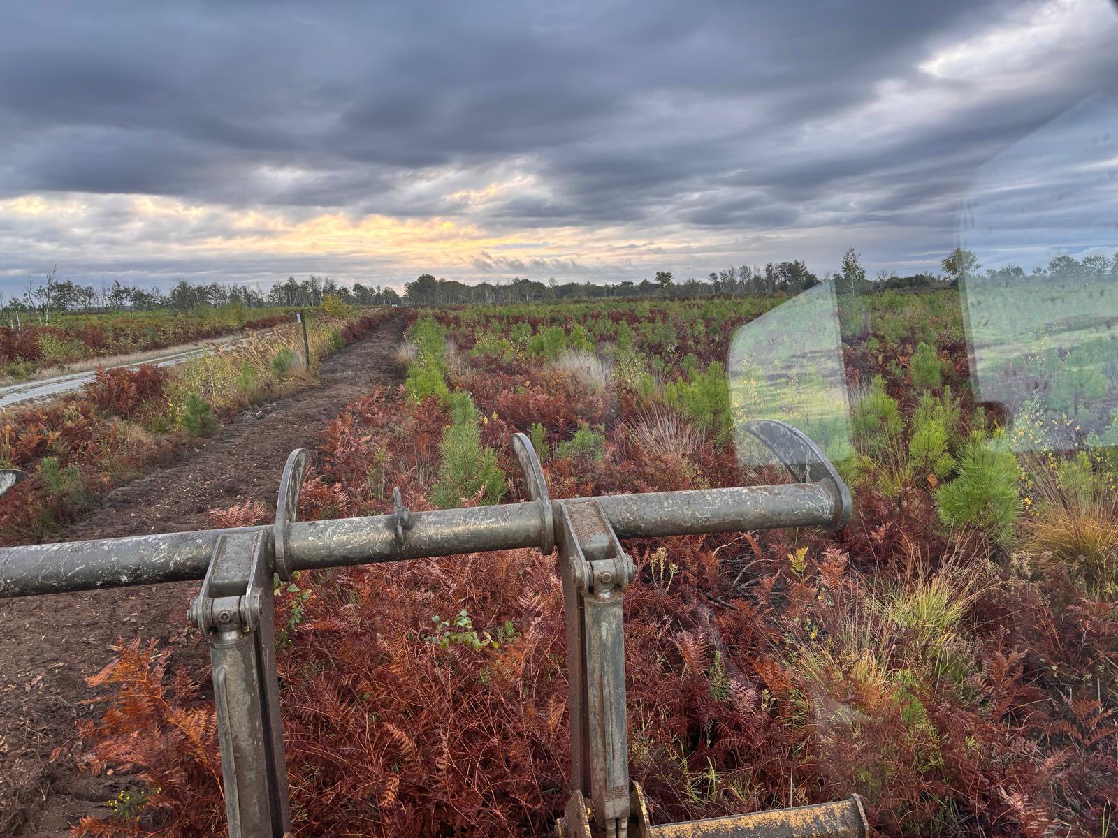 Broyage léger sur les couloirs de passage. Broyage lourd sur les zones de placeaux. Création de potets linéaires au scarificateur 5 dents.